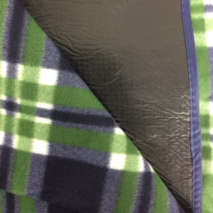 Velika odeja za piknik, ki se zvije, z zapiranjem in trakovi za nošenje. Z vodoodporno plastjo proti vlagi na eni strani. Teža 1,1 kg Dimenzije 200 × 150 cm Material FLANELA PVC Barva MODRA